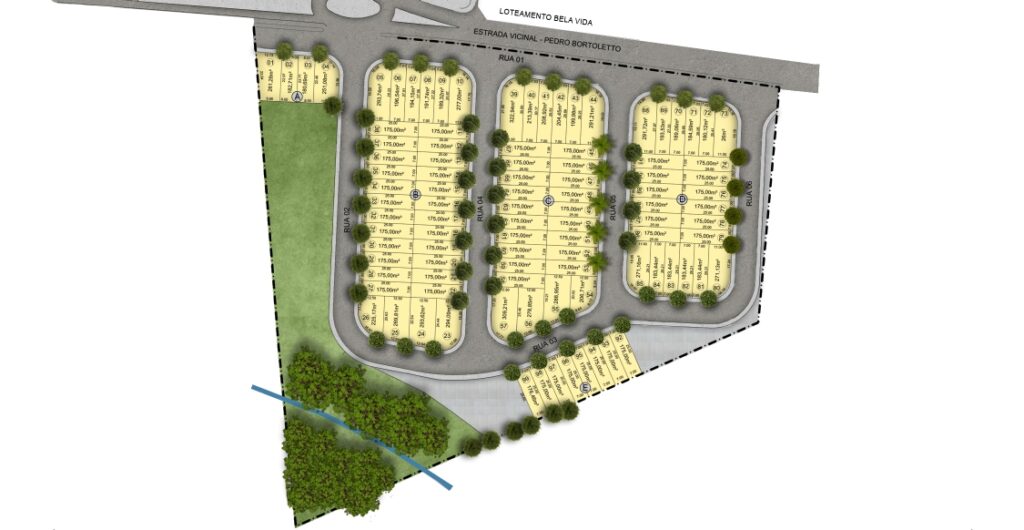 Tipologia:Lotes residenciais e mistos a partir de 176m² (8x22m) até 284m², ideais para moradia ou investimento.