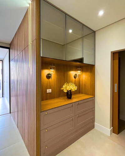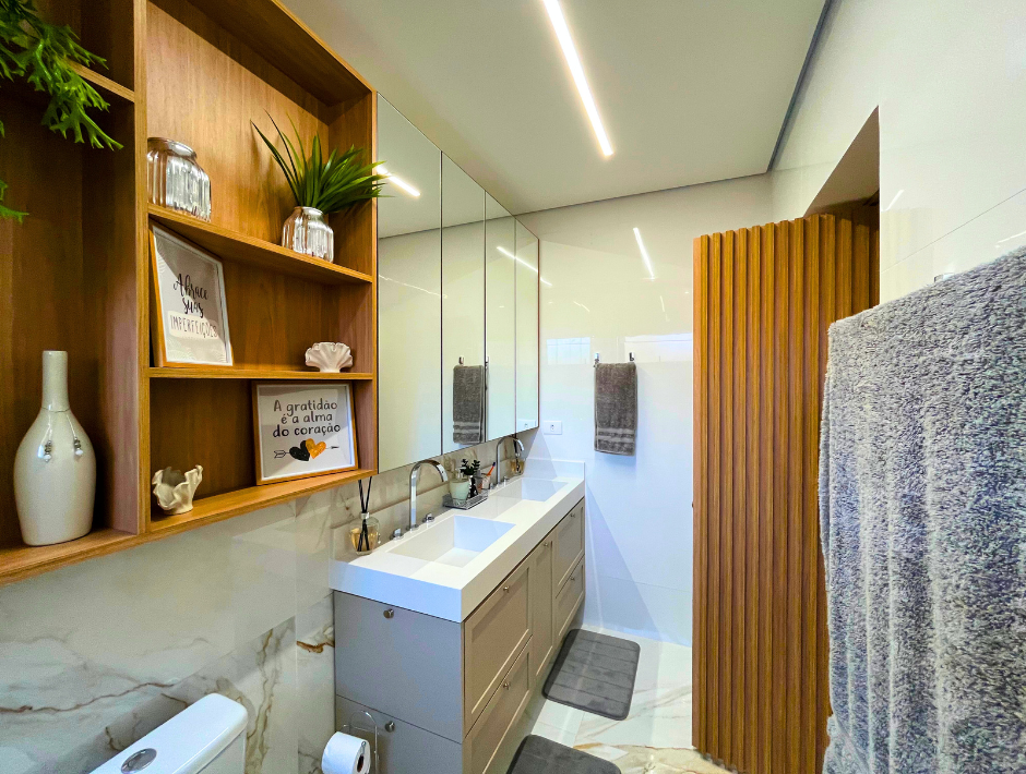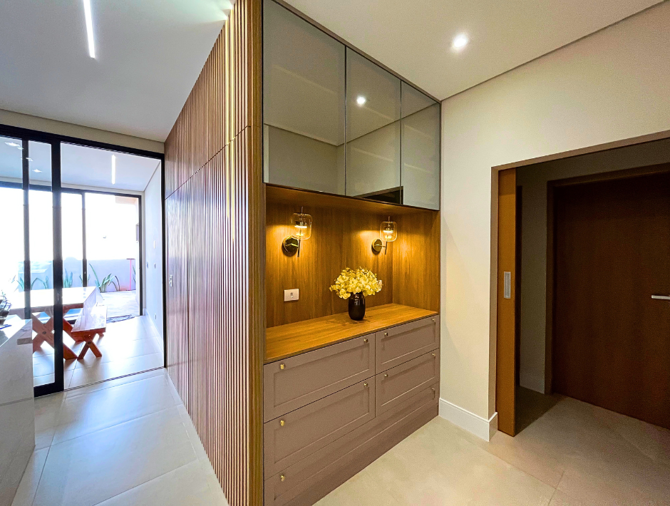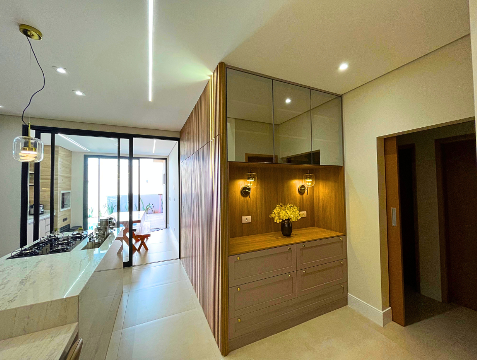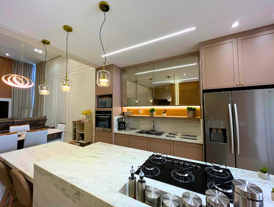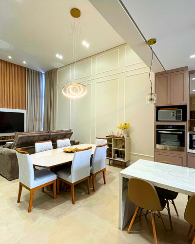 Este projeto, com estilo neoclássico, une charme e funcionalidade.