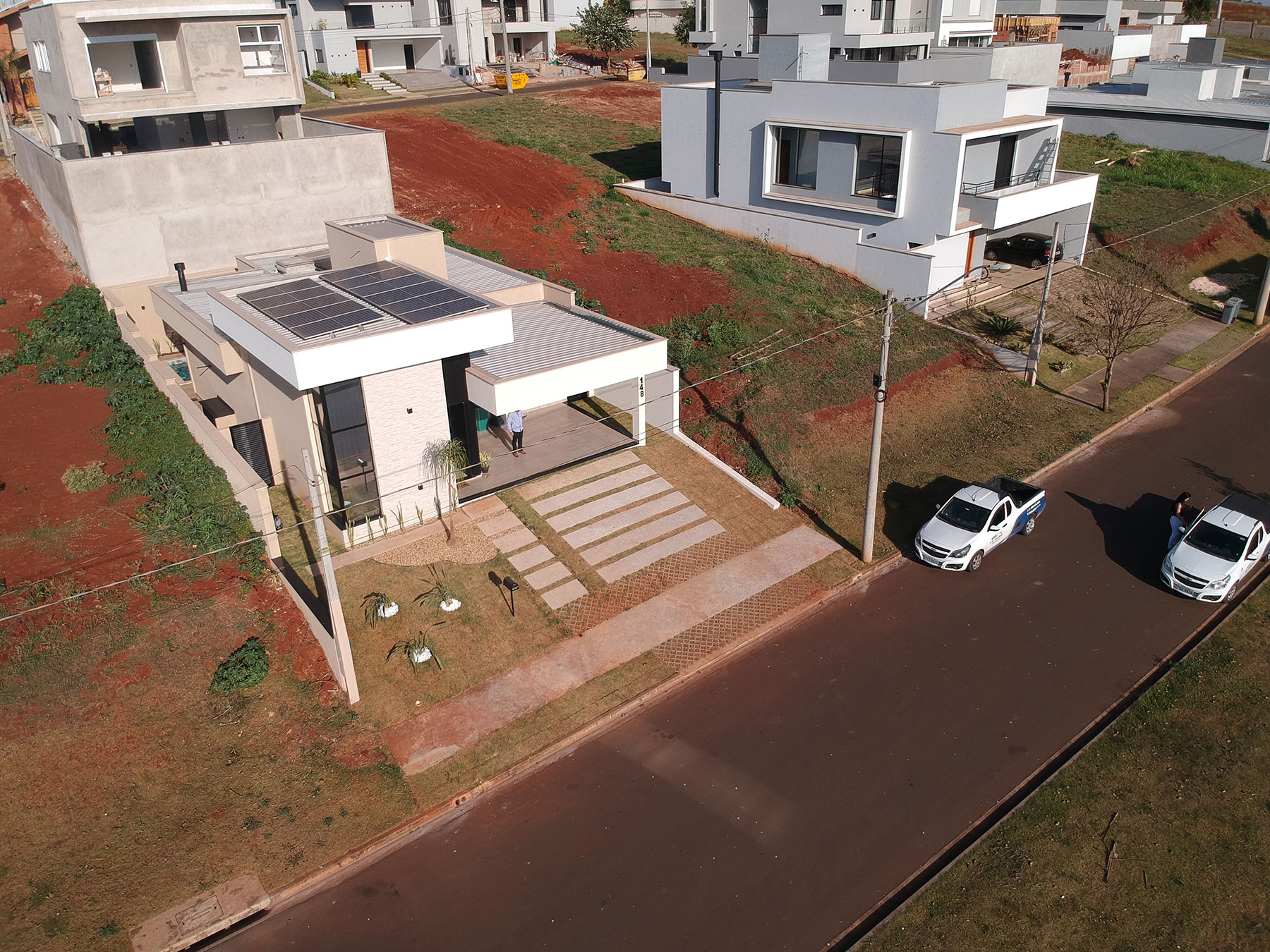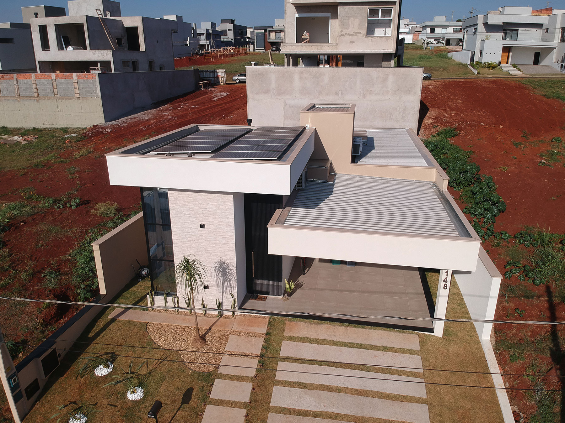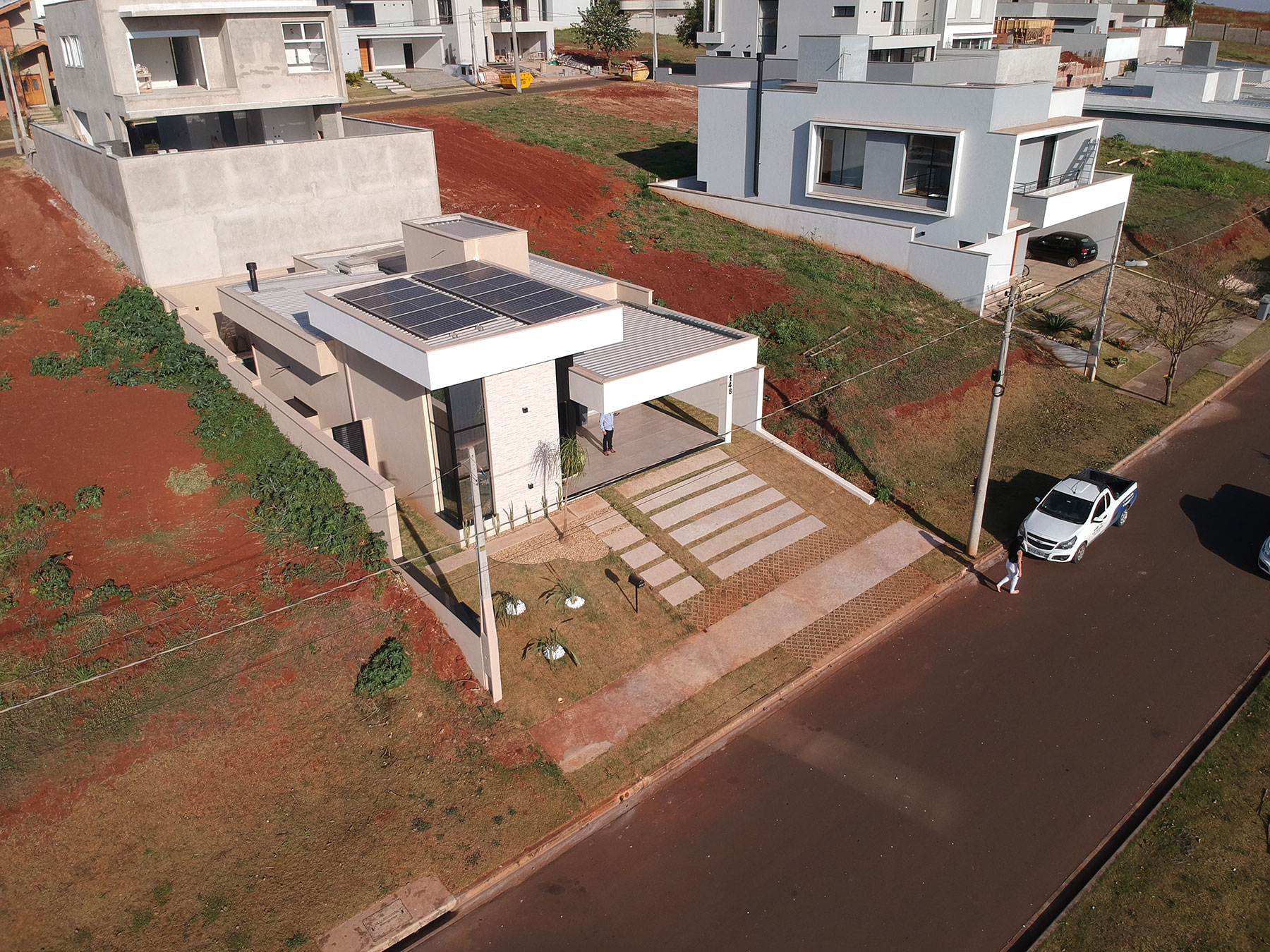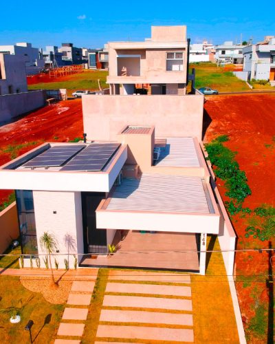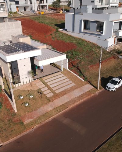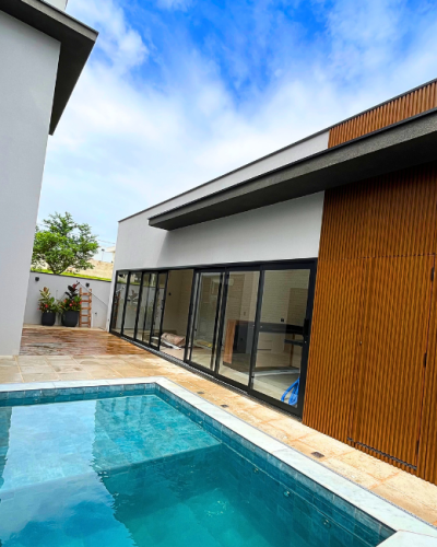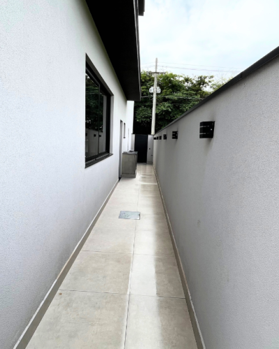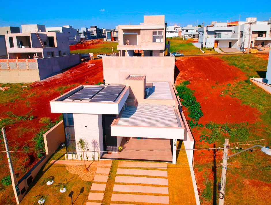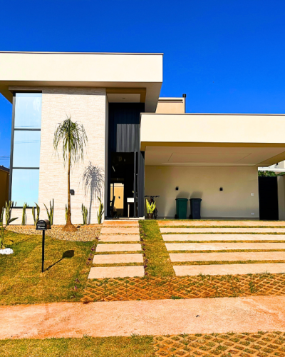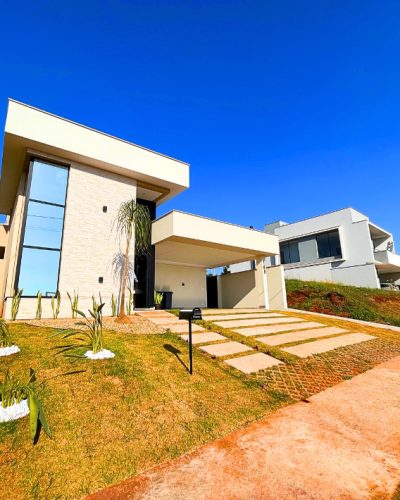A casa apresenta sala 2 ambientes integrada com cozinha e área gourmet, lavabo, despensa e lavanderia. São 3 dormitórios, incluindo uma suíte master com closet, além de banheiro social e lavabo externo.
