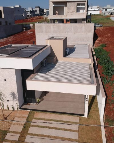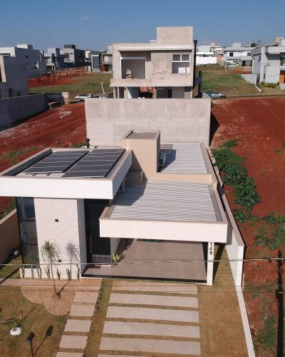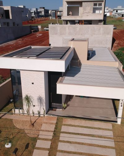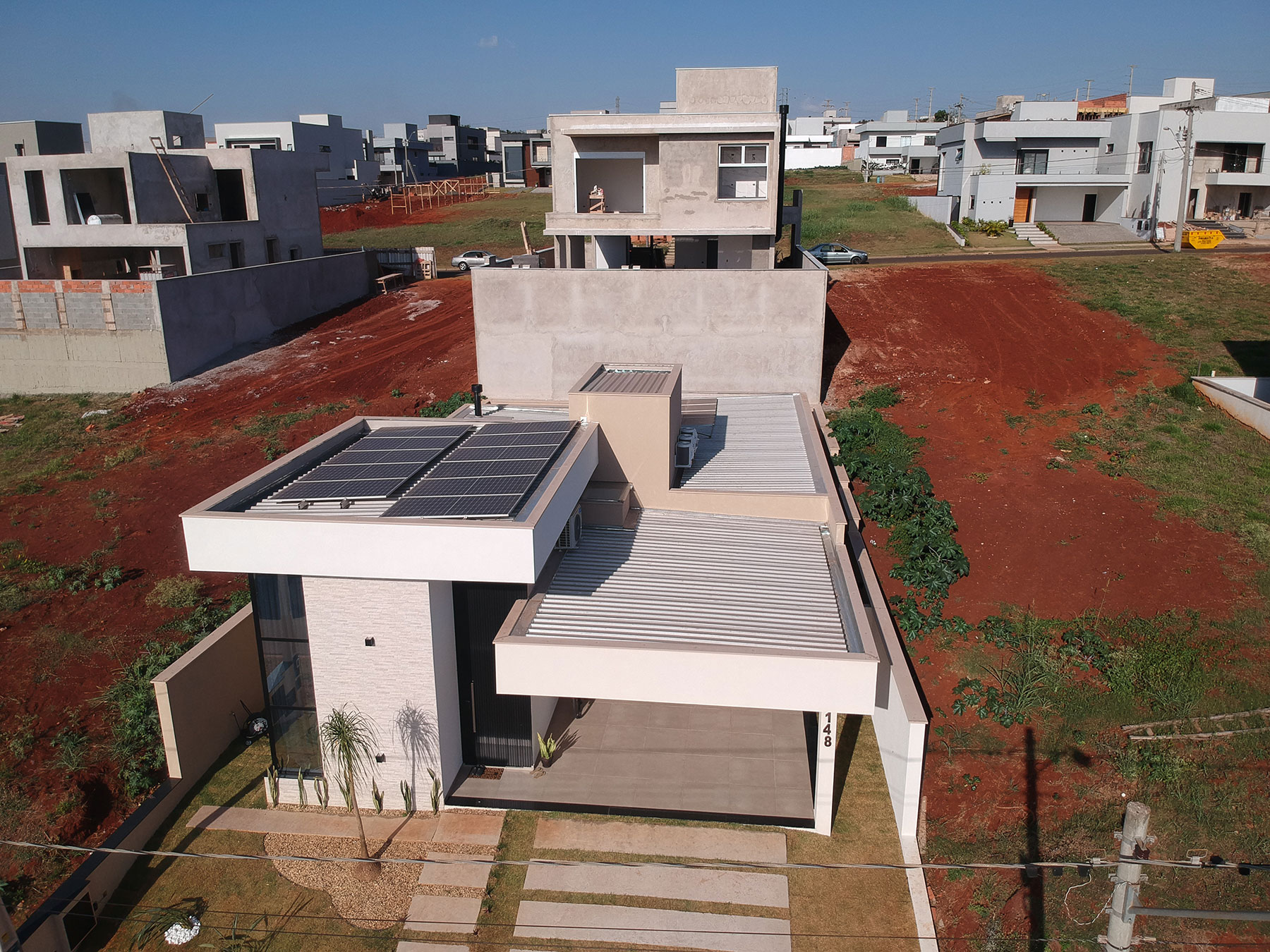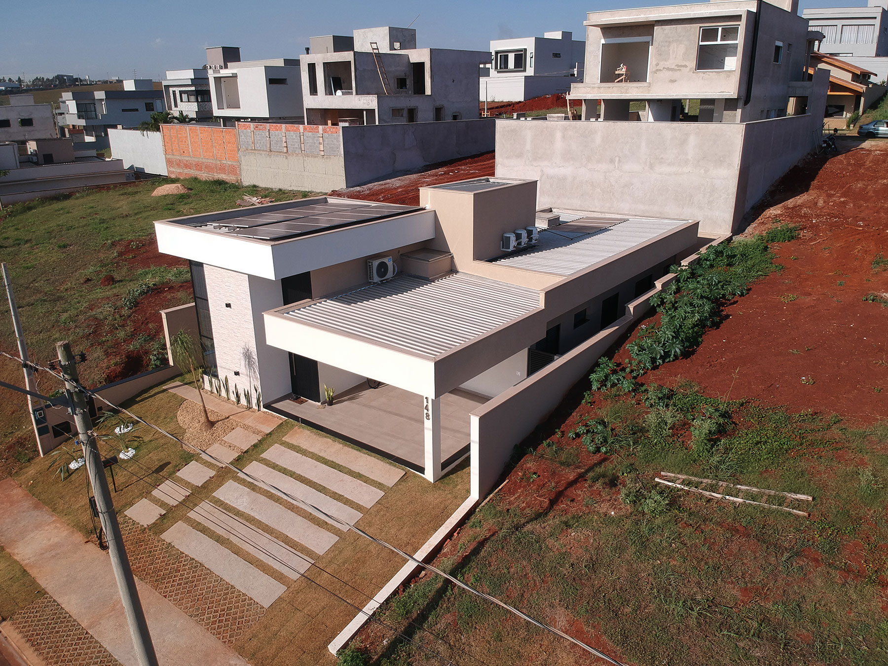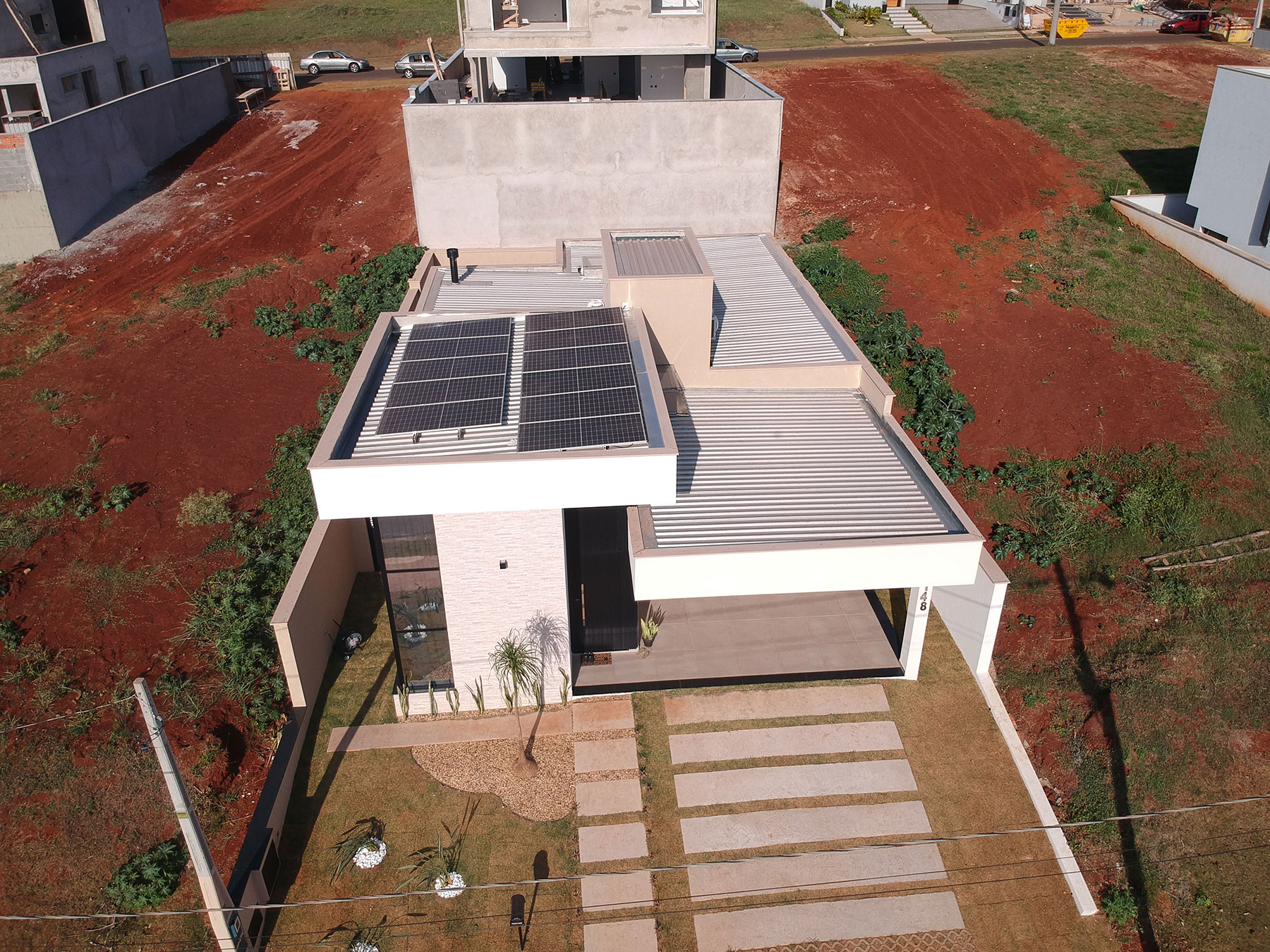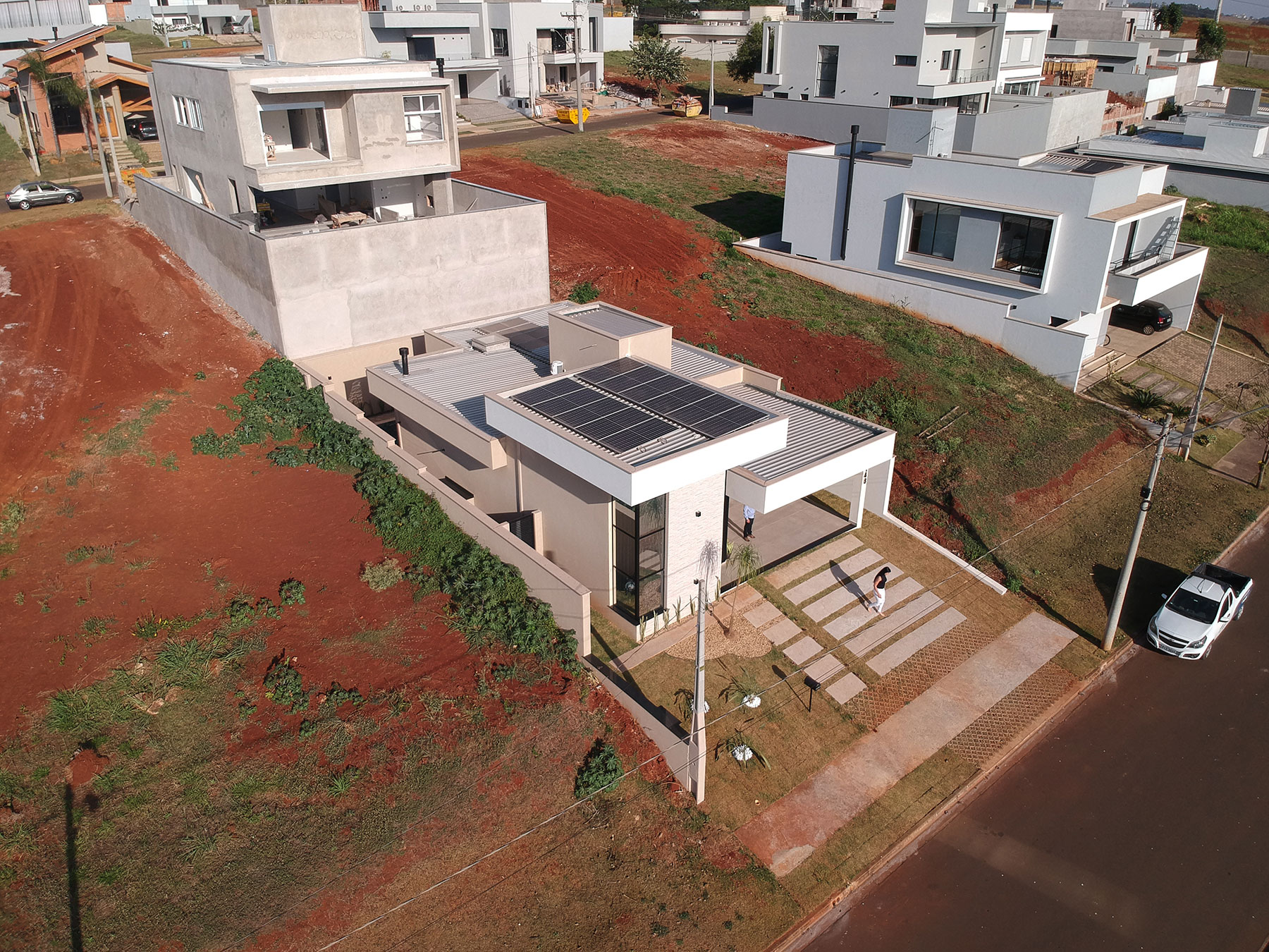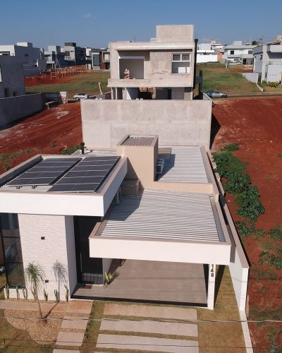 A casa apresenta sala 2 ambientes integrada com cozinha e área gourmet, lavabo, despensa e lavanderia. São 3 dormitórios, incluindo uma suíte master com closet, além de banheiro social e lavabo externo.